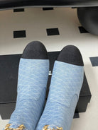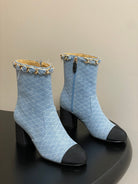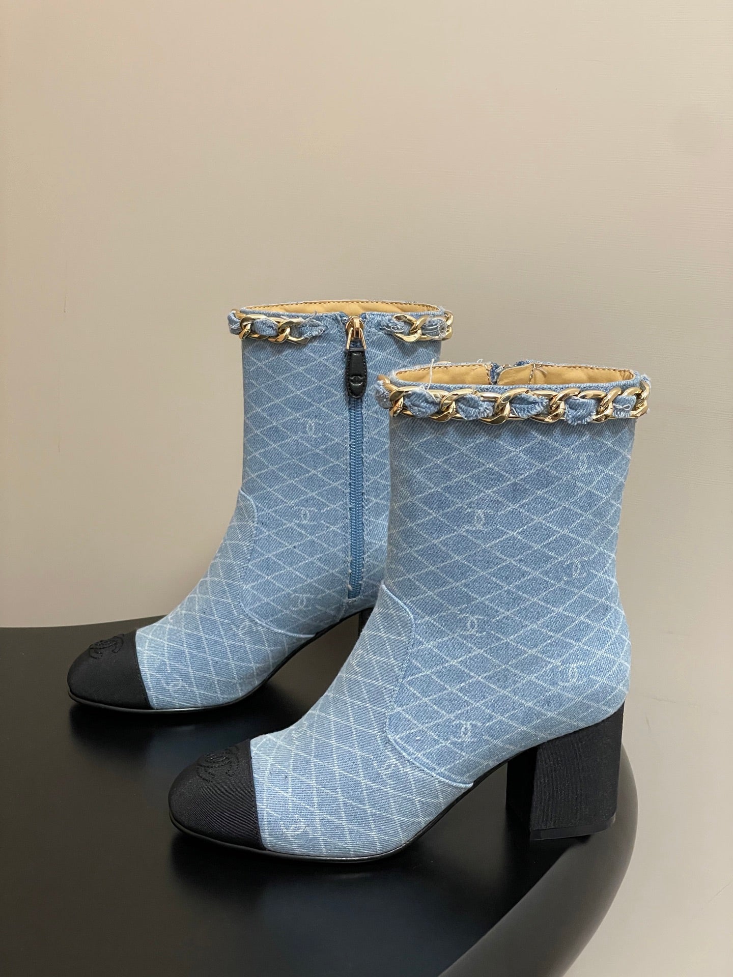 CC 25B Chain Short Boot 70mm Black Light Blue Denim 423146