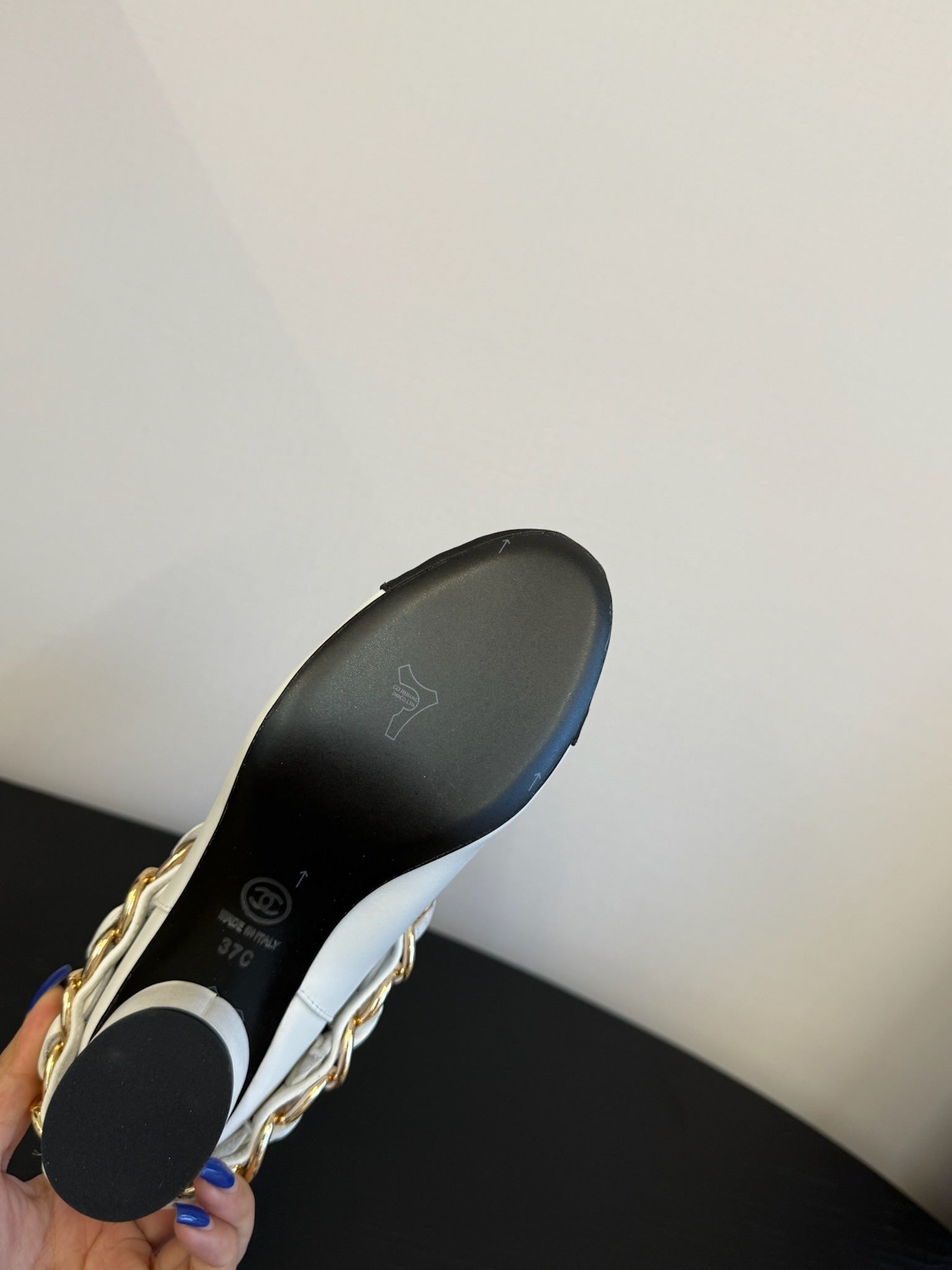 CC 25S High Boots With Chain Black White Cowhide & Sheepskin 417846
