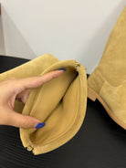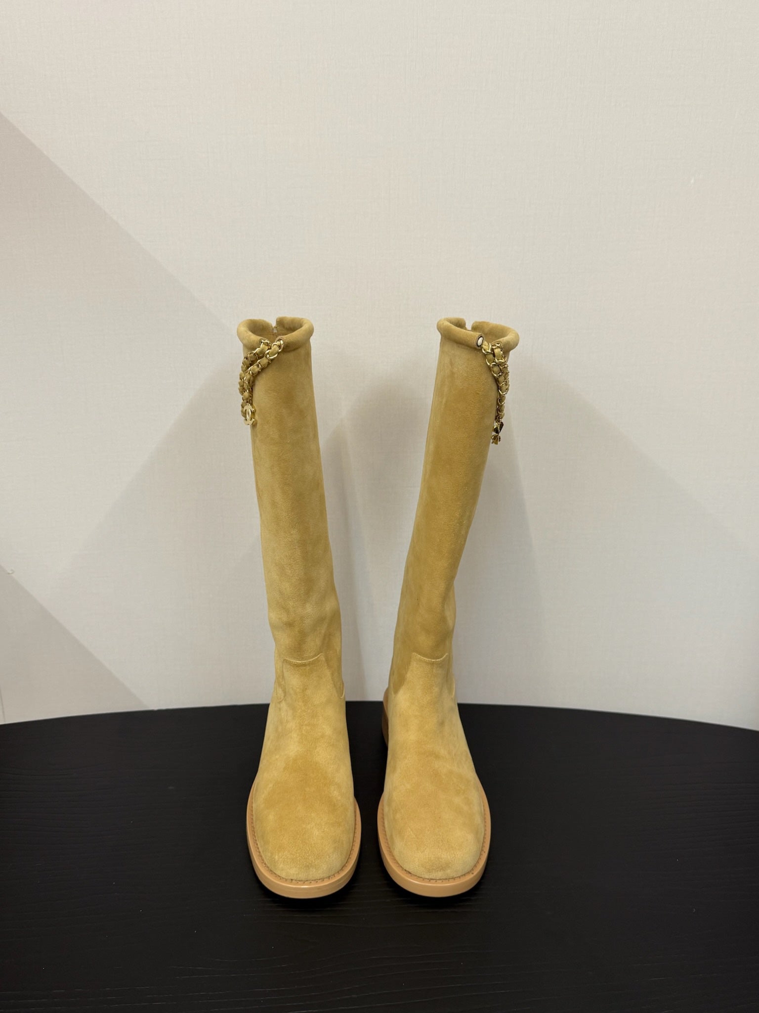 CC 25s Long Flat Chain Knight Boots Beige Cow Suede&Sheeepskin 417844