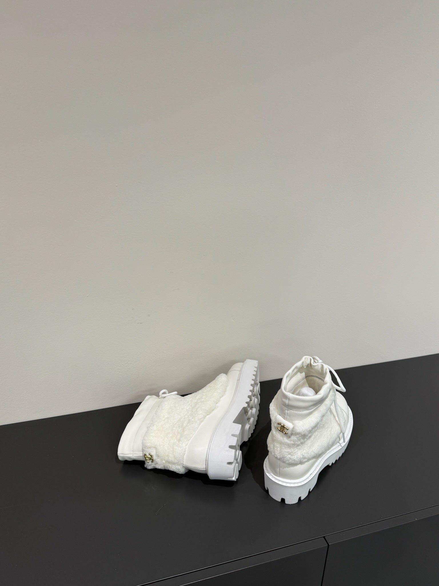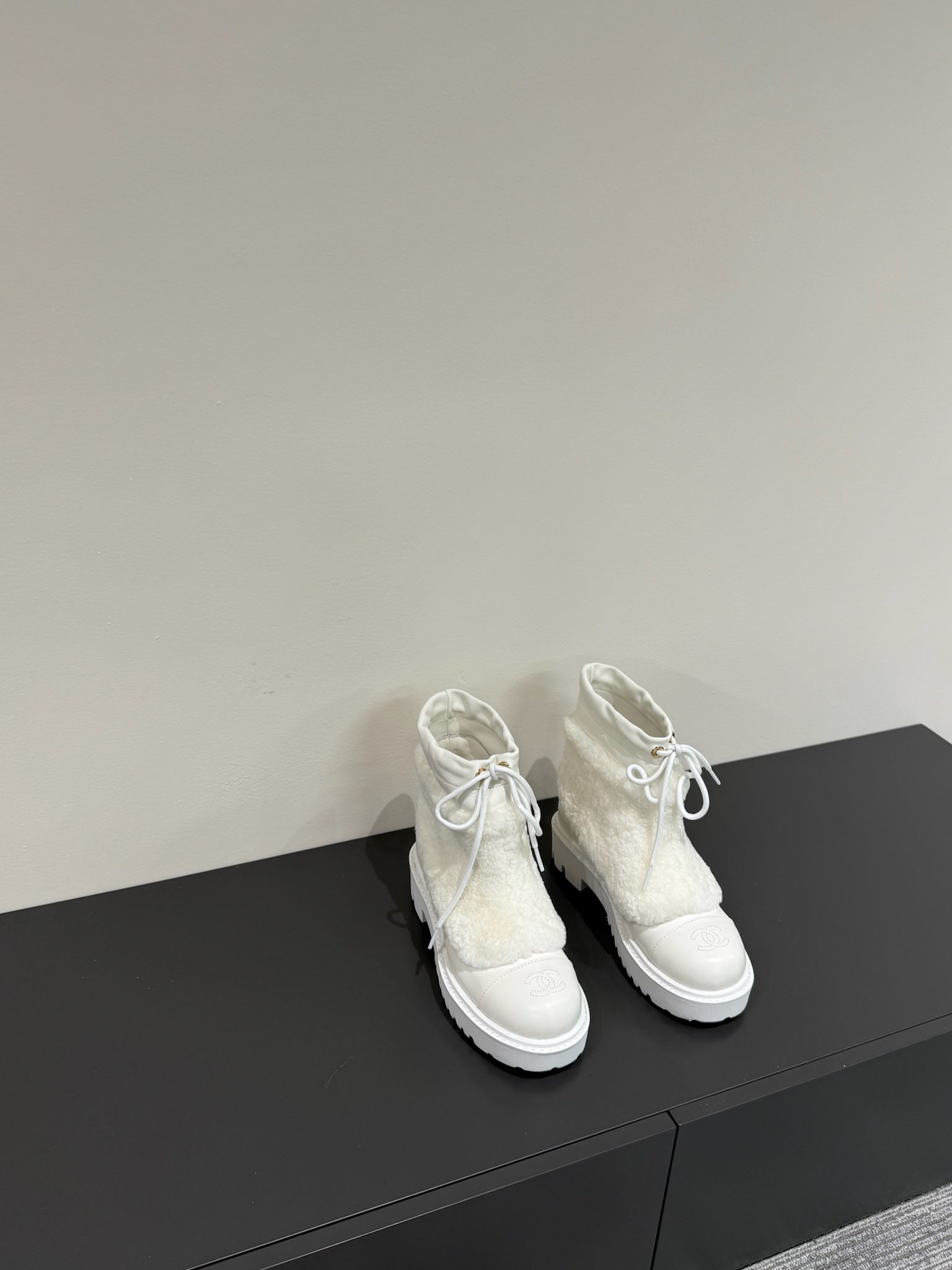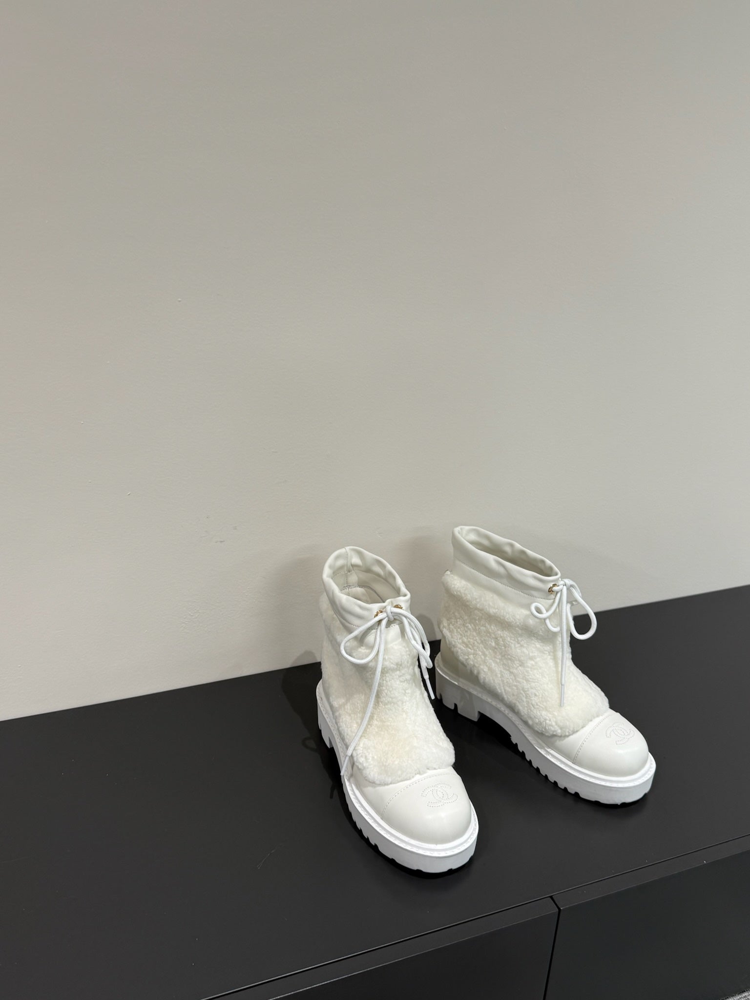 CC 25ss Martin Snow Boots White Cowhide & Lambswool 417824