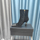 CC Ankle Boots Black Beaded Fabric And Cowhide