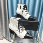 CC Ankle Boots White Tweed Fabric And Lambskin