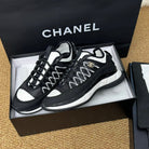 CC Sneaker Black Mix White Calfskin And Silk Parachute Fabric 947509