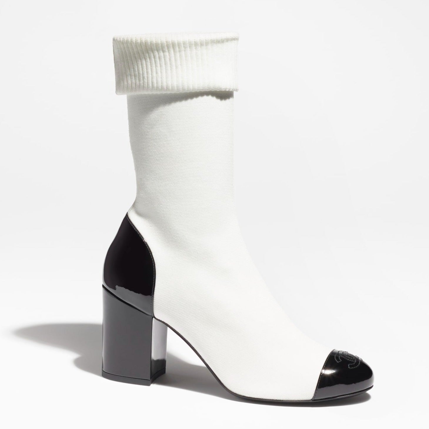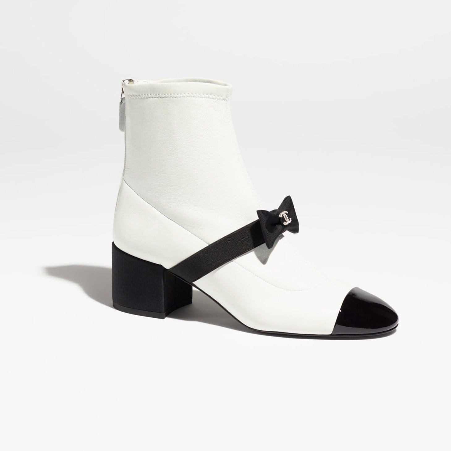 short boots white black stretch lambskin & patent calfskin