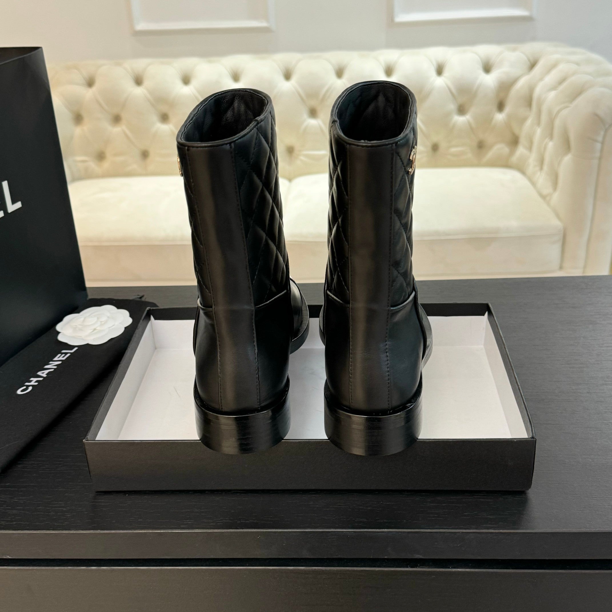 CC SHORT BOOTS BLACK CALFSKIN