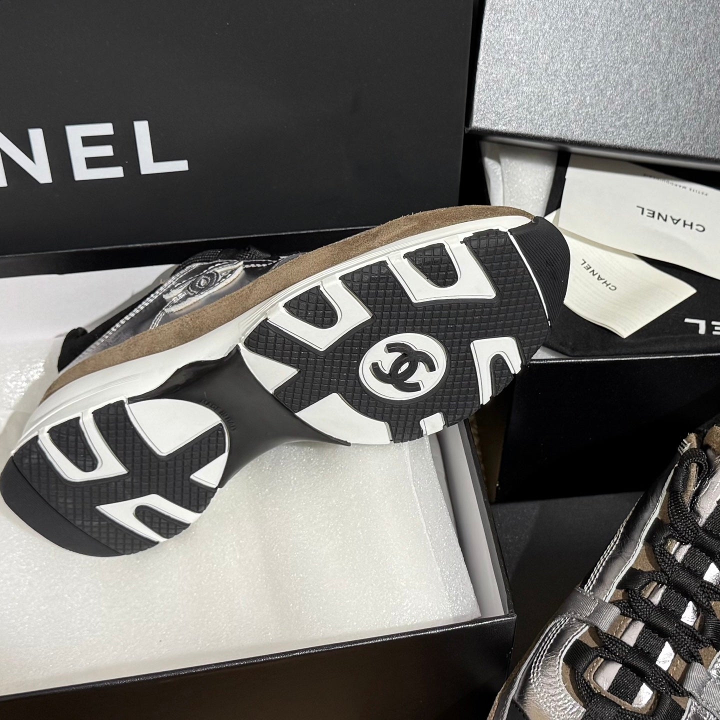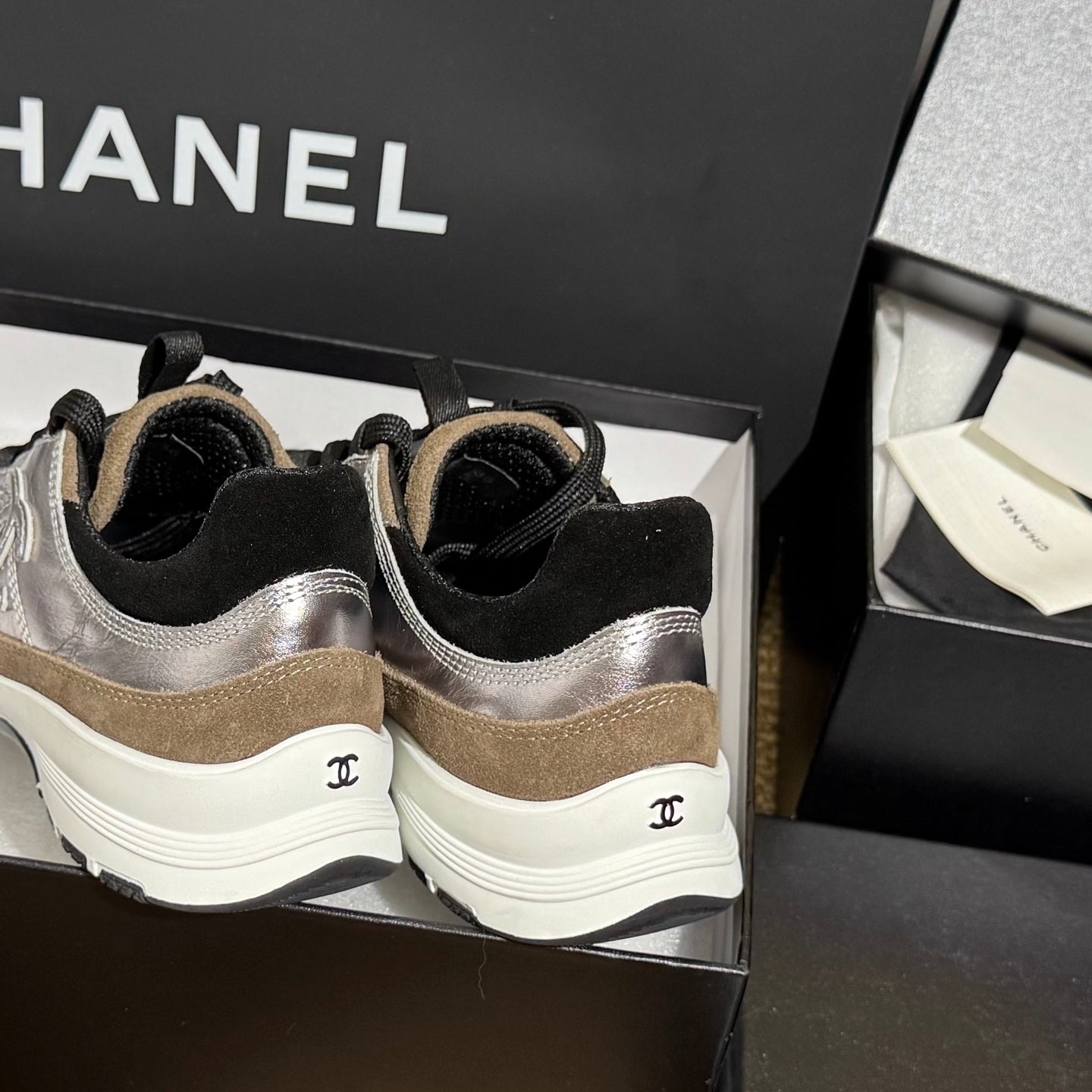 CC 25A Trainers Silver Black Brown Laminated Calfskin And Suede Calfskin352118