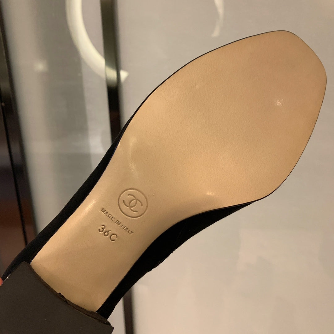 CC Short Boots Black With Chain Suede And Cowhide 944963