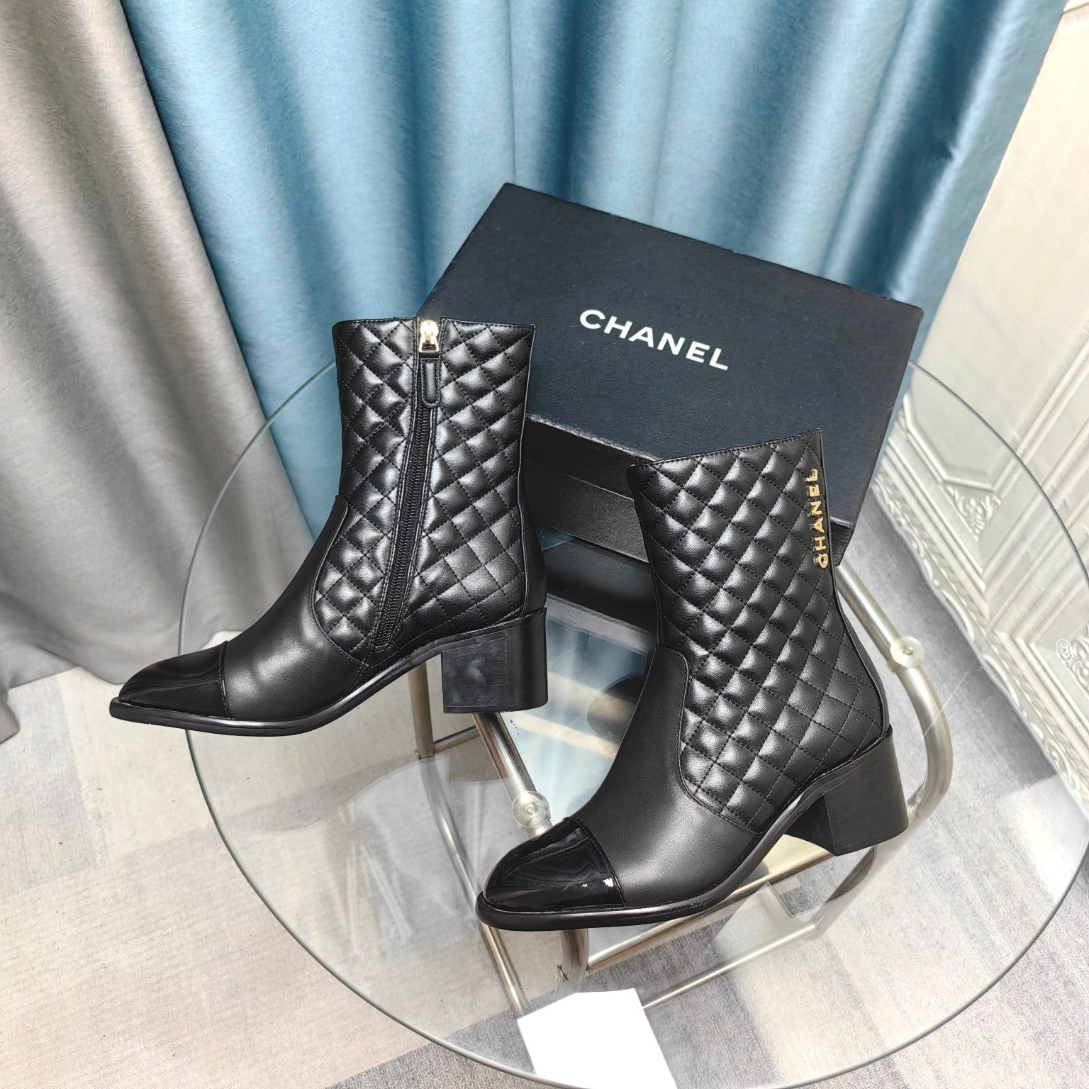 CC Short Boots Black Quilted Cowhide And Lambskin