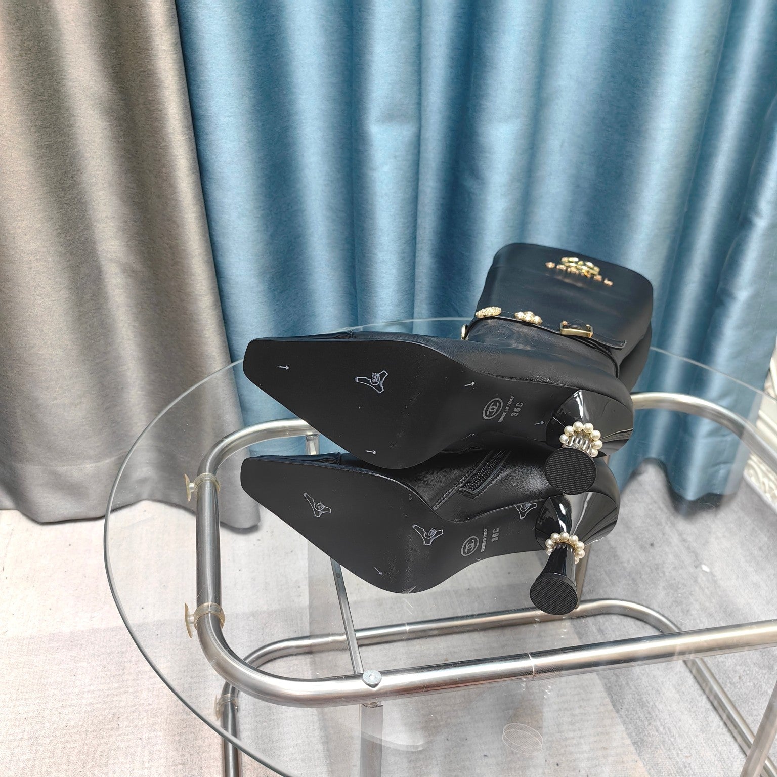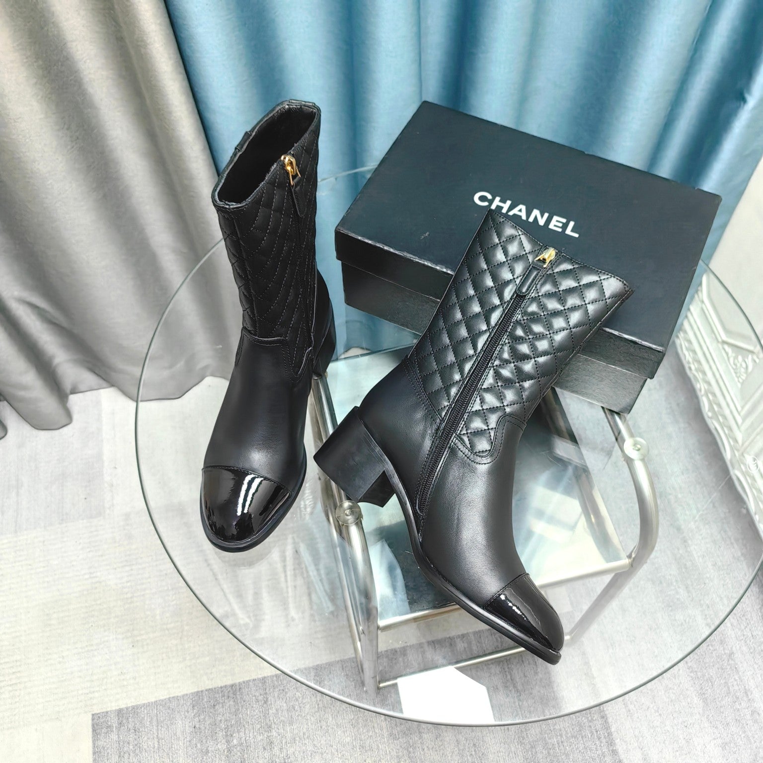 CC High Boots 40mm In Plain Black Mix Glossy Black Quilted Calfskin 949749