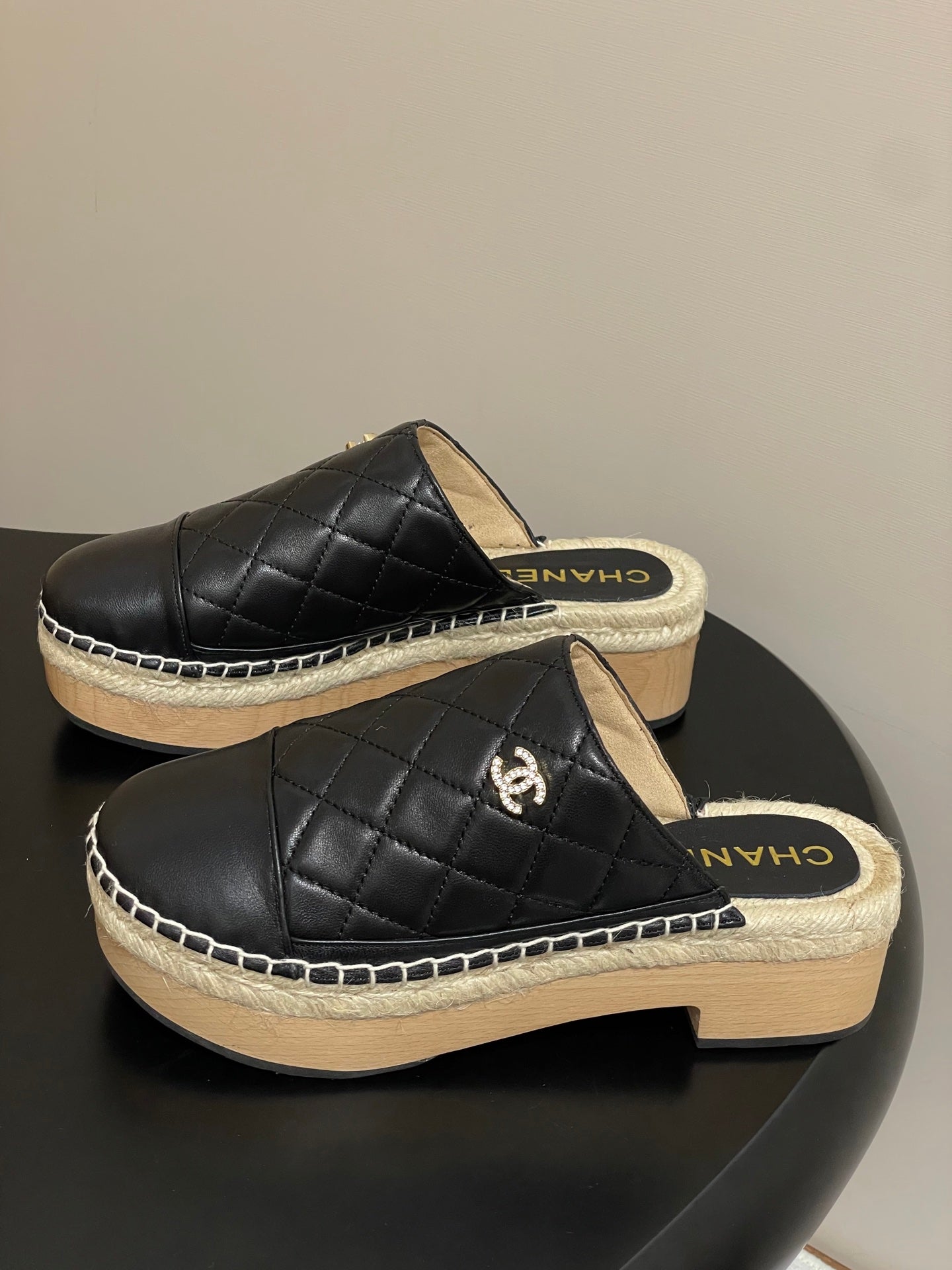 CC 25A Clog Slippers 40mm Black Quilted Lambskin 393951