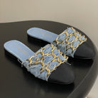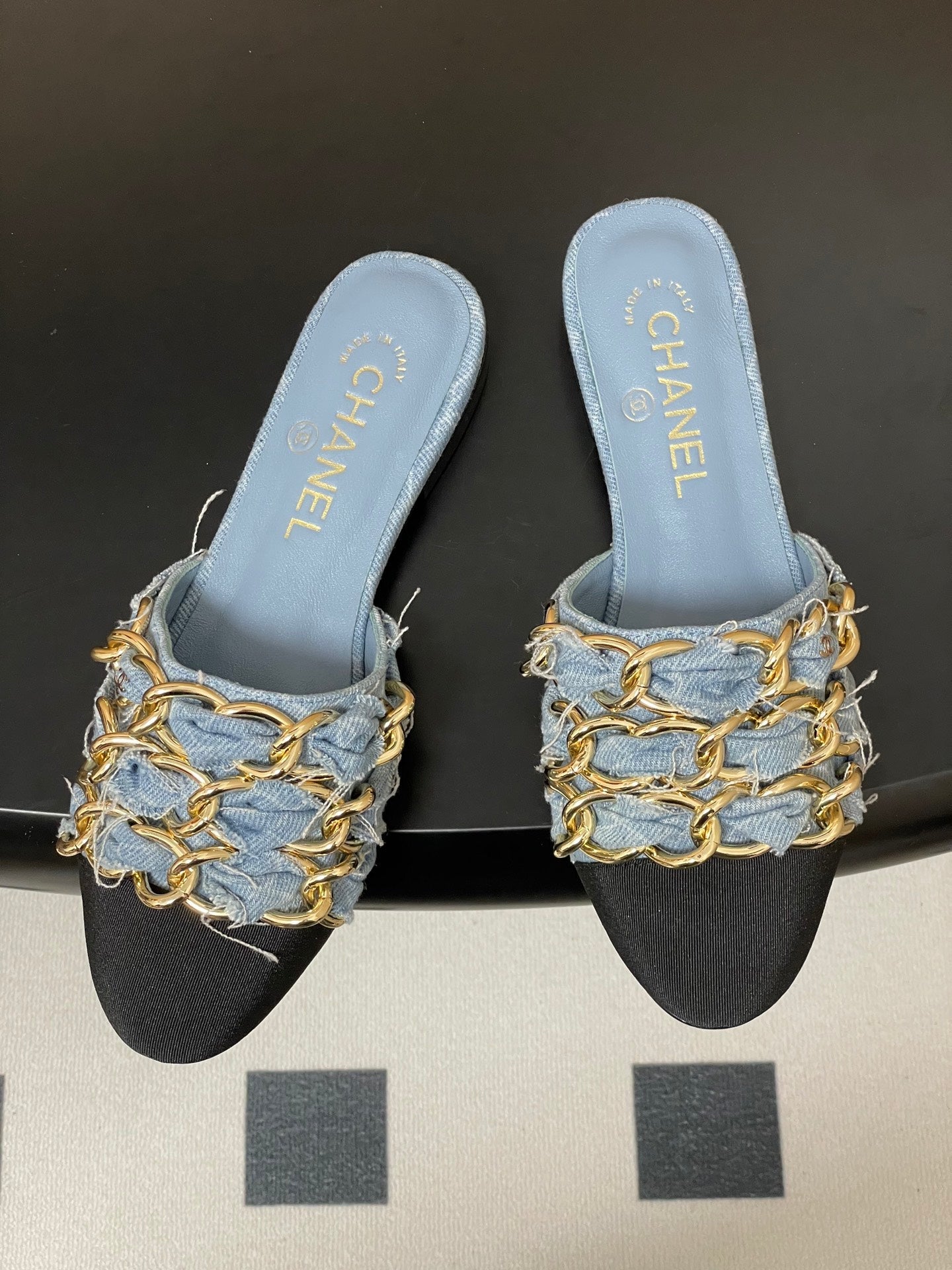 CC 25B Chain Closed Toe Flat Mule Light Blue Denim 393887