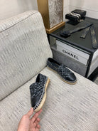 ESPADRILLE BLACK MIX WHITE TWEED FABRIC AND CALFSKIN FLATS