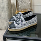 ESPADRILLE COLORFUL TWEED FABRIC AND BLACK CALFSKIN FLATS