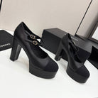 CC 25S Mary Jane Platform 11cm Black Calfskin Grosgrain