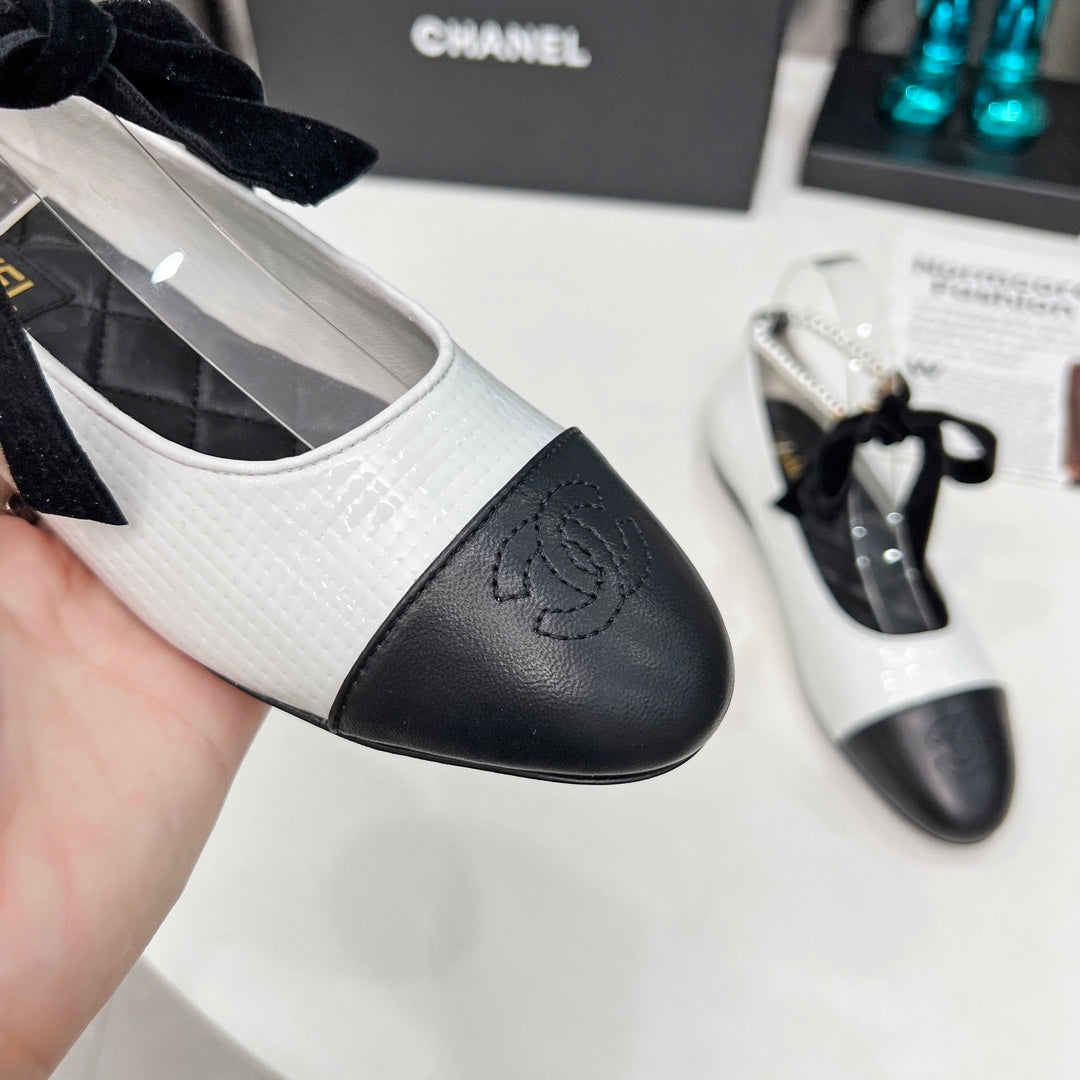 CC Mary Jane White Black Studded With Pearls Lambskin And Cowhide
