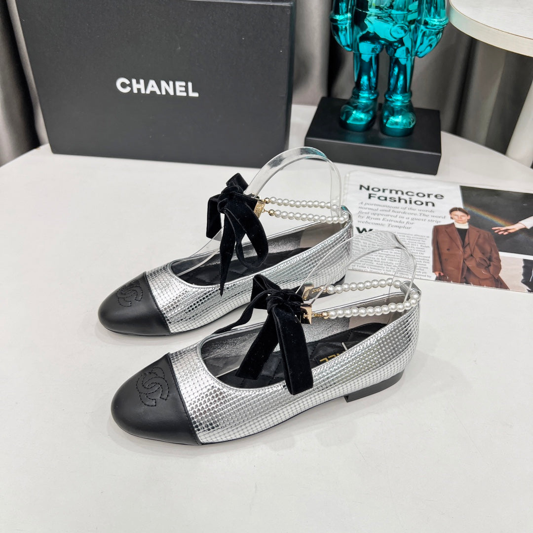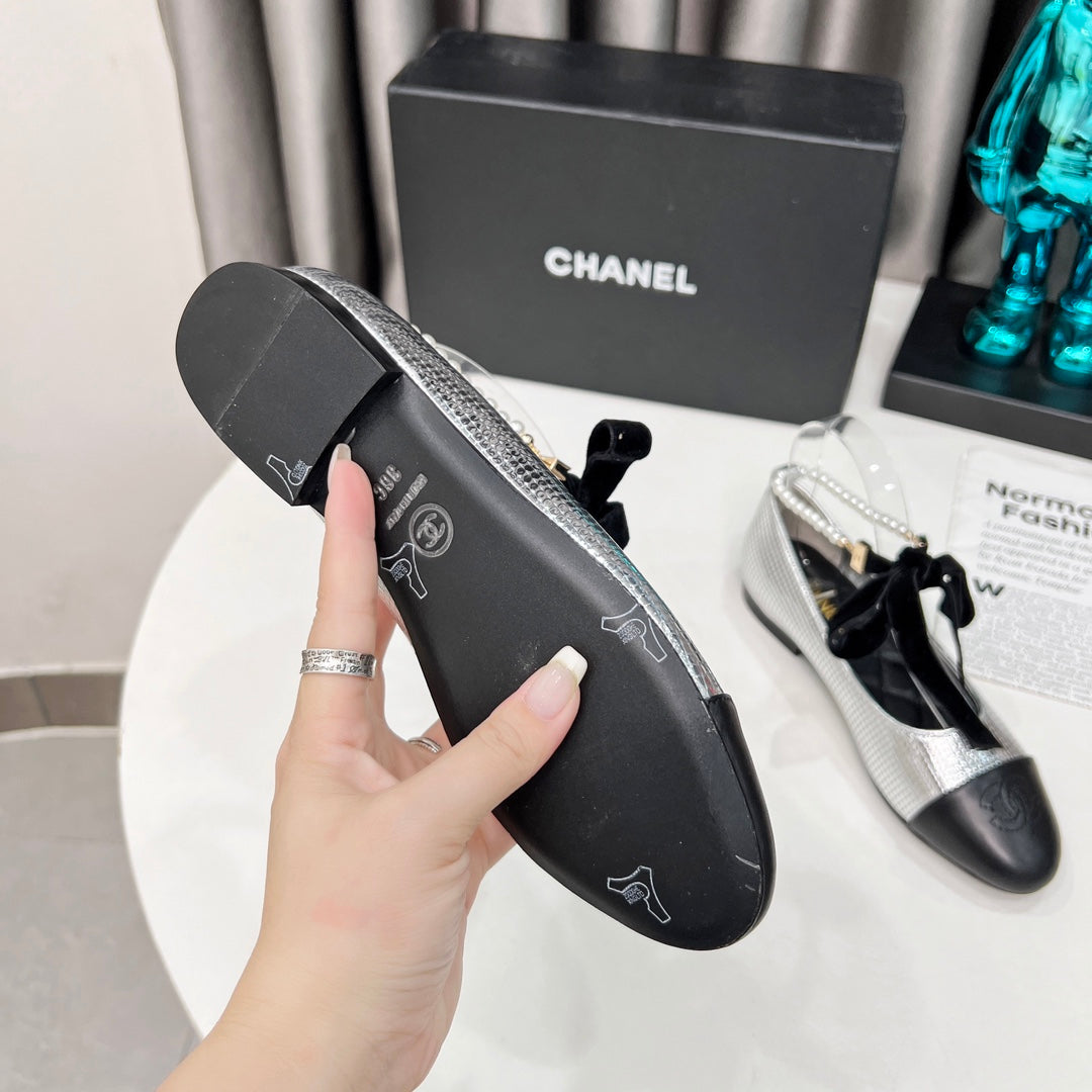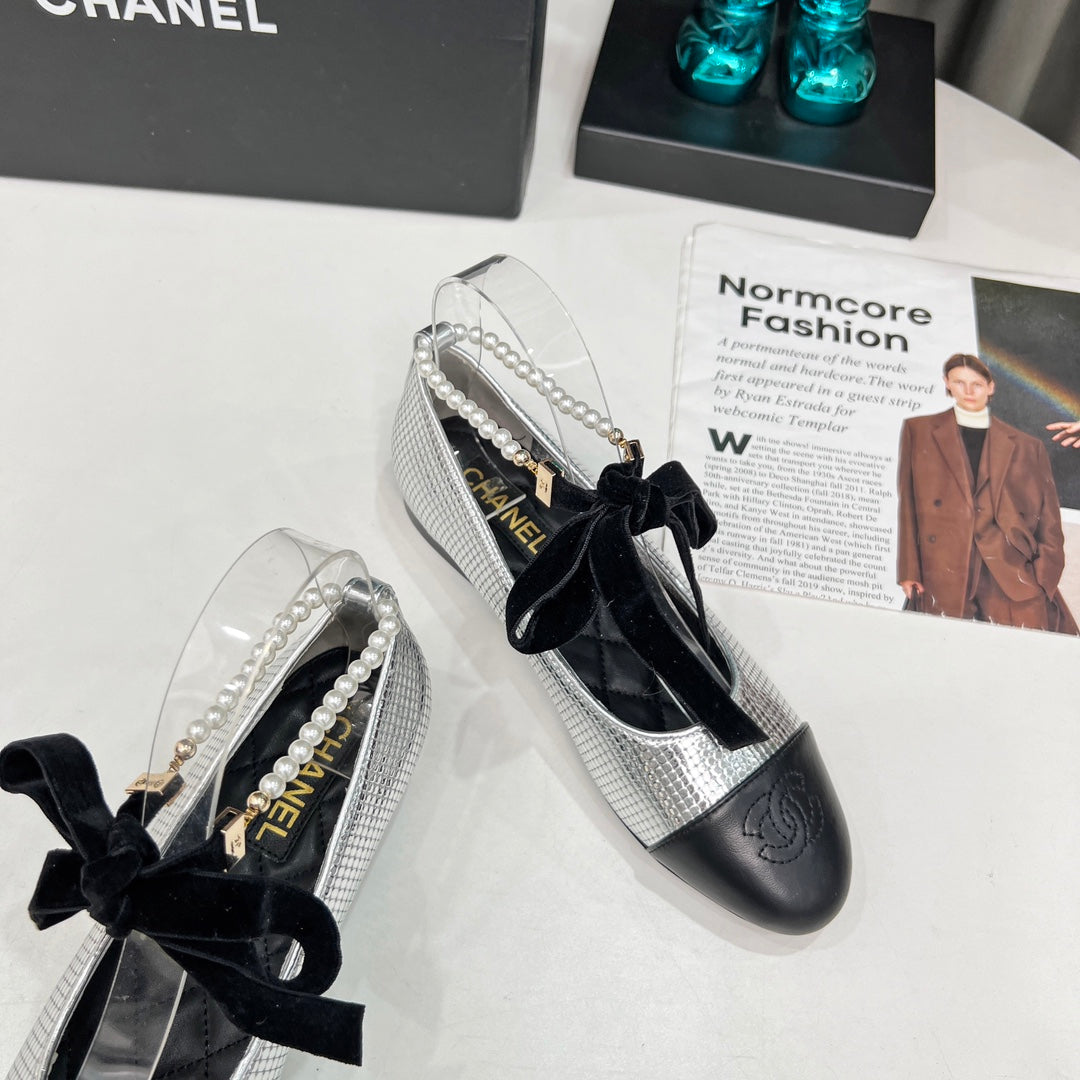 CC Mary Jane Black Studded With Pearls Lambskin And Cowhide