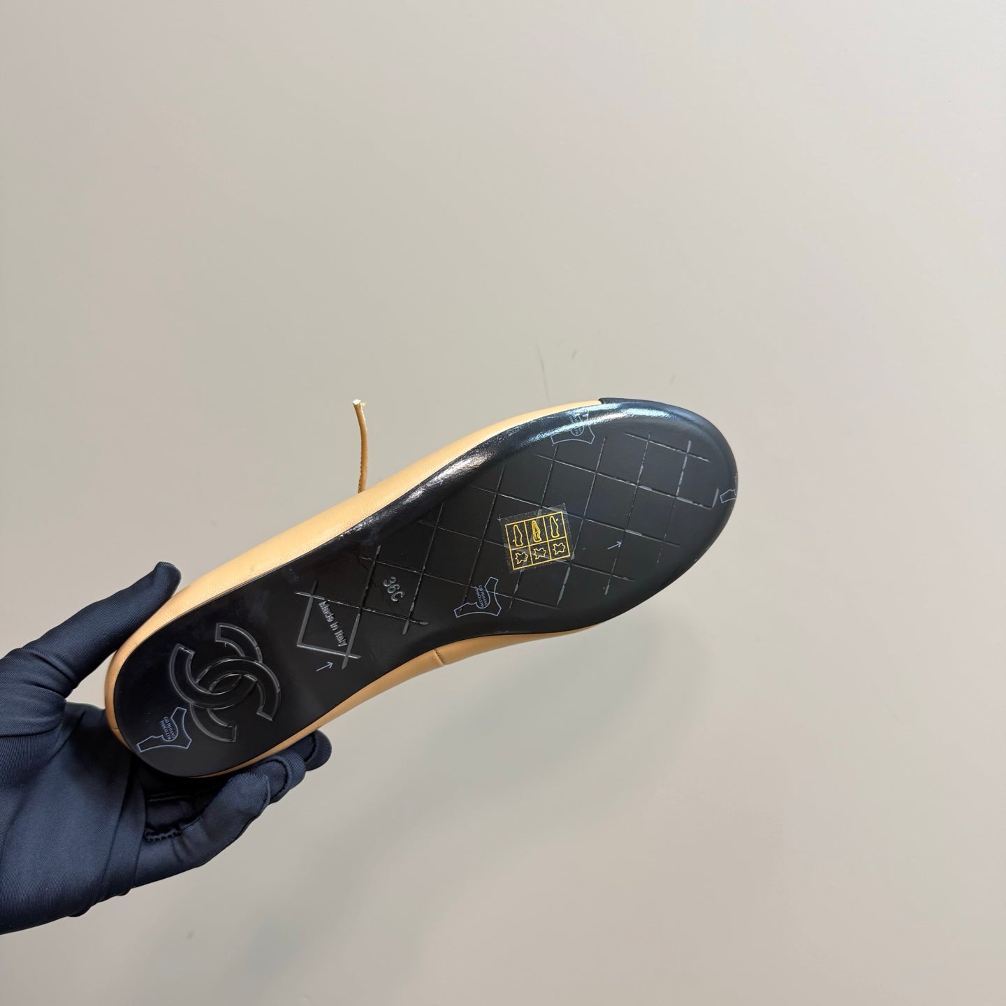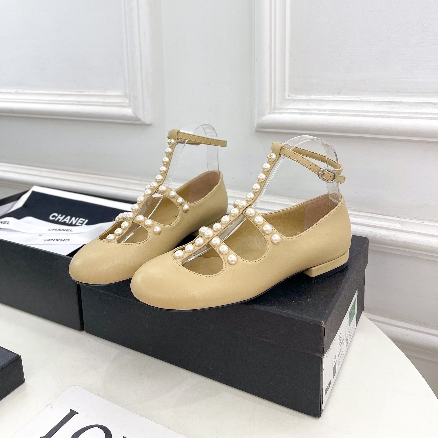 CC Mary Jane Beige Yellow Round Nose Lambskin