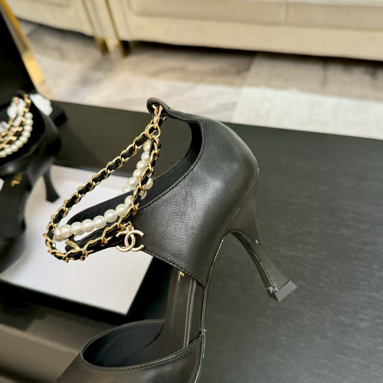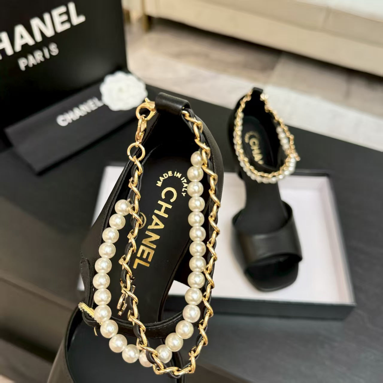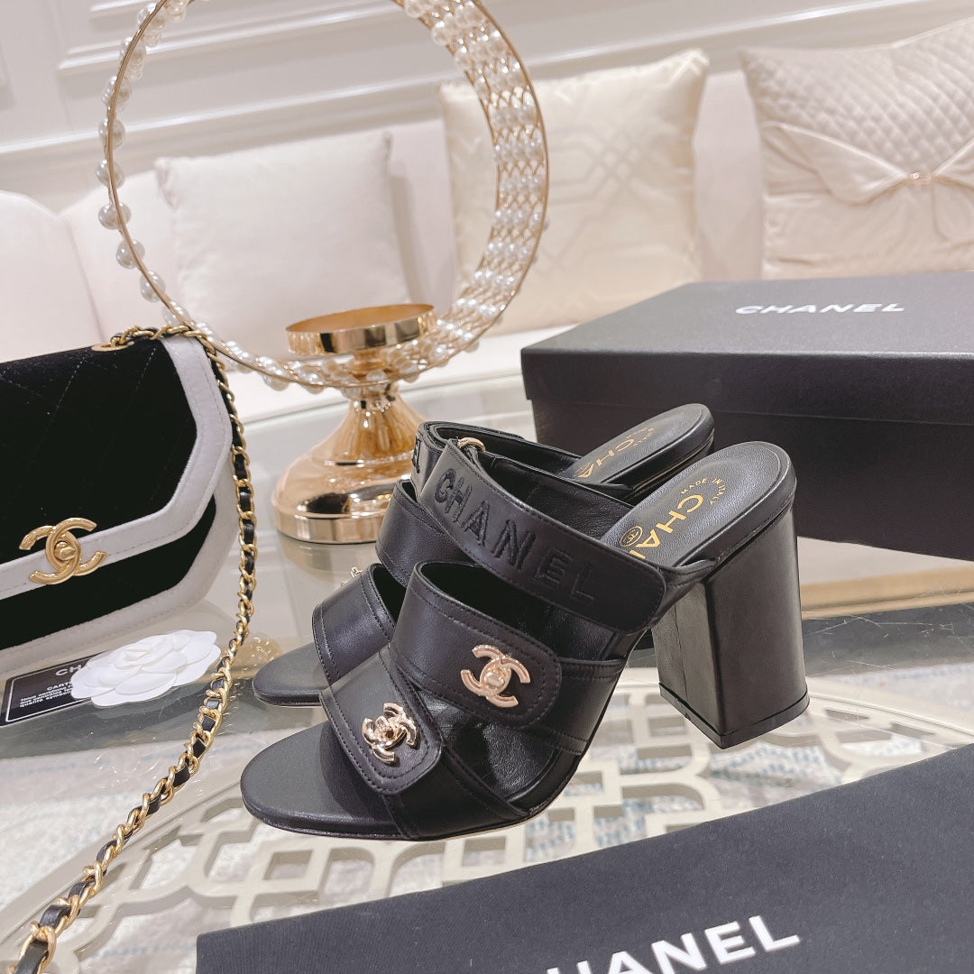 CC Mesh Hollow Chain Double C Thick-Soled Slippers 70mm Black 265651