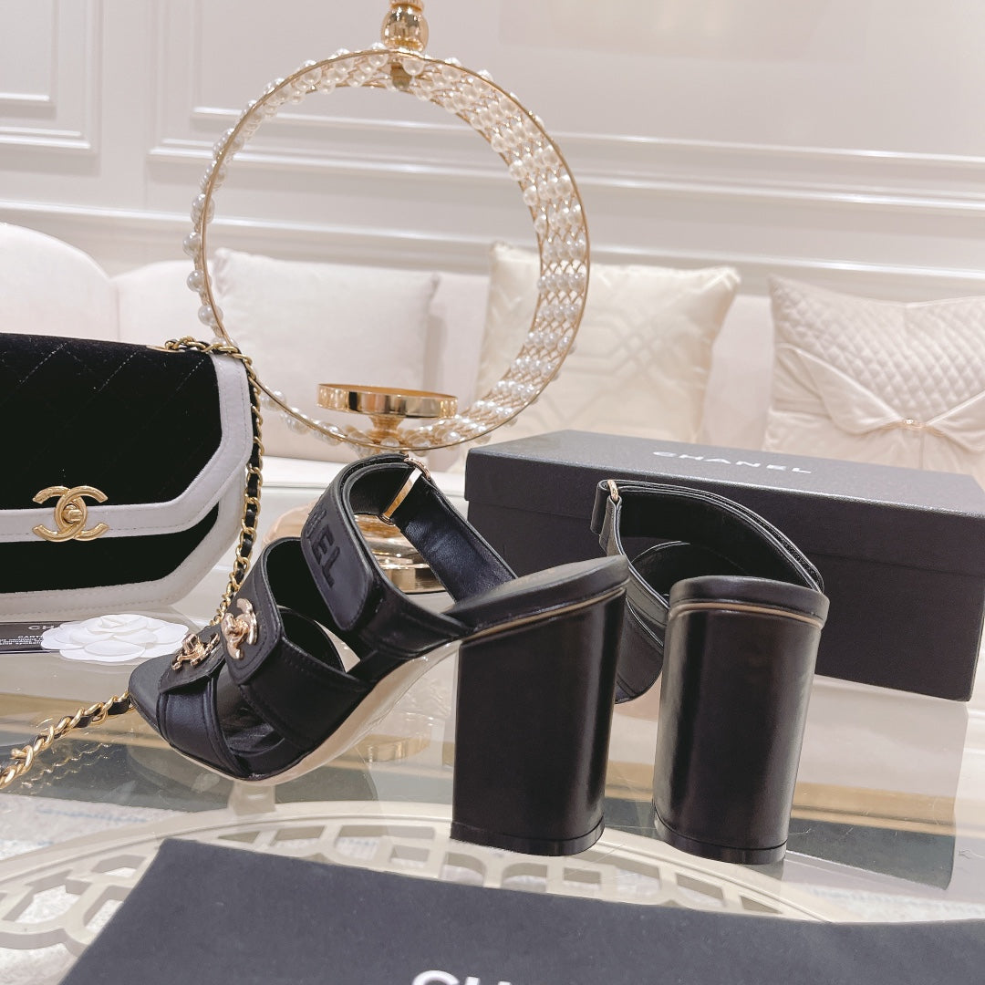 CC 25S Sandal Three Leather Strap Black Calfskin