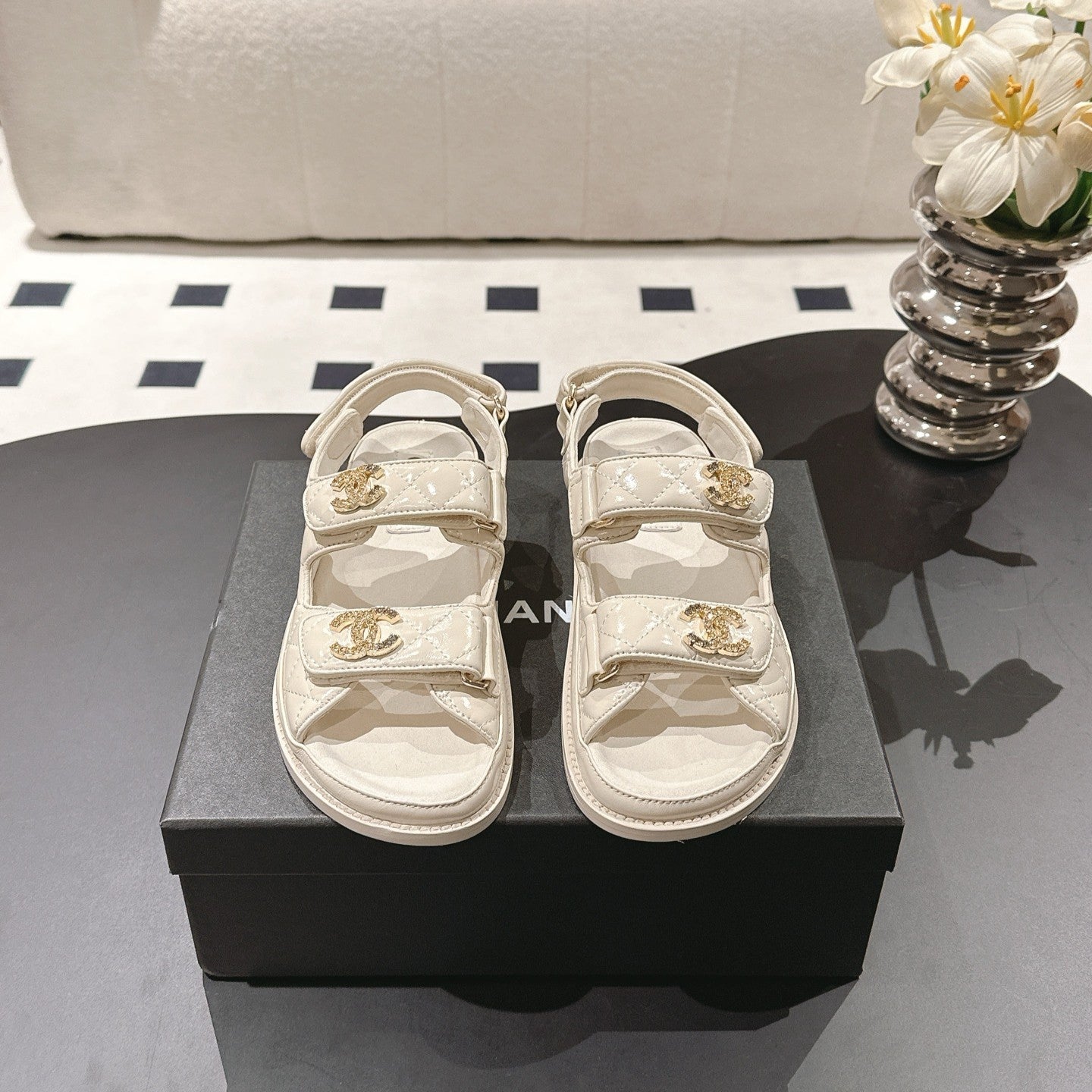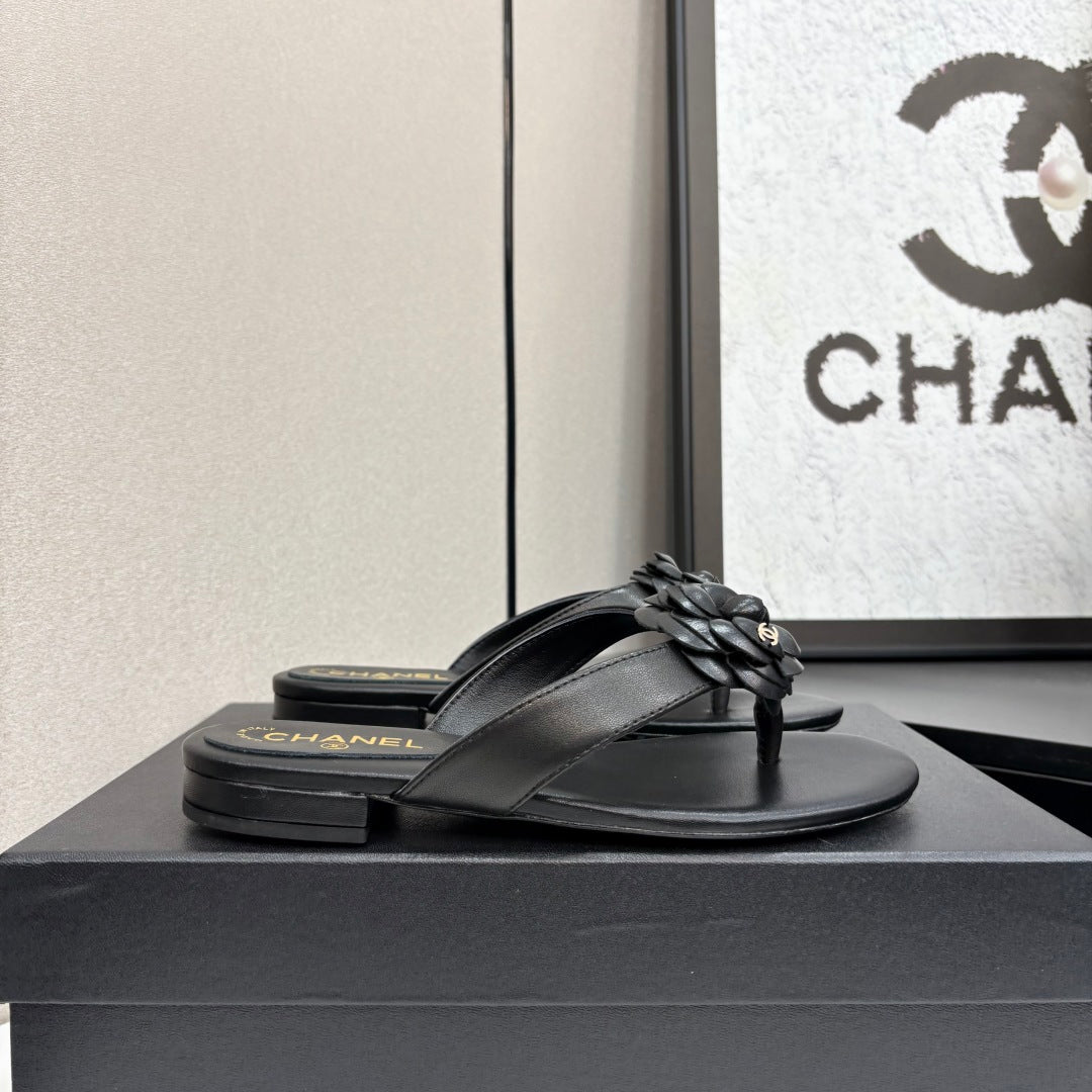 CC 25 Flip Flop Sandals Beige Suede Calfskin Espadrilles