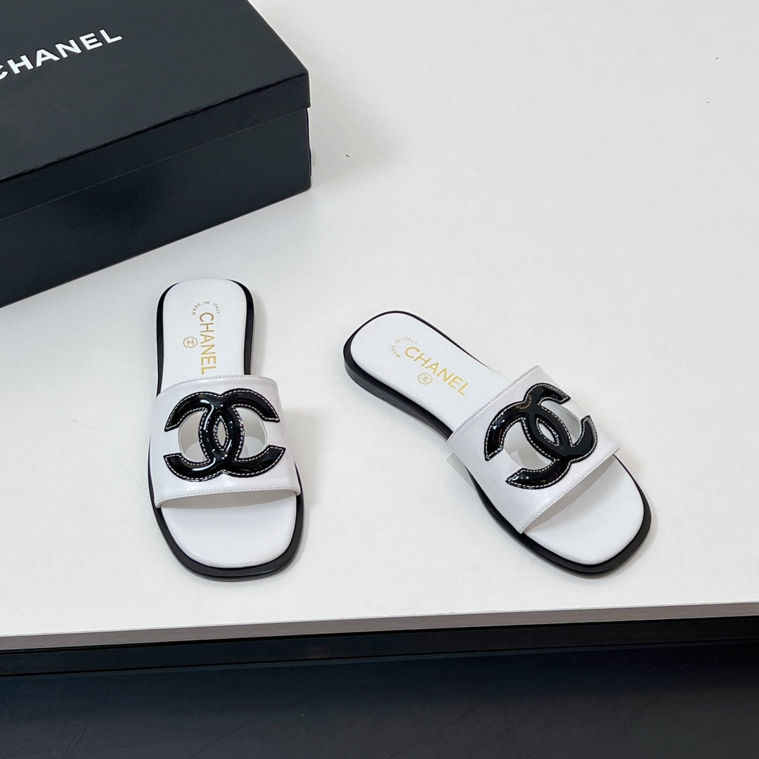 CC 25ss Chain Flat Slippers Black Cowhide & Sheepskin 417565