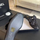 BIG BOW FLAT MULE SANDALS IN BLACK SILK