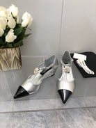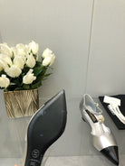 CAMELLIA CAP JANE SANDALS IN SILVER MIX BLACK LAMBSKIN