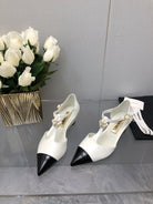CAMELLIA CAP JANE SANDALS IN WHITE MIX BLACK LAMBSKIN
