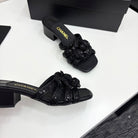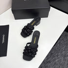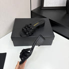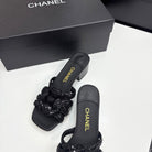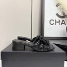 CC 25 Camellia Open Heel Mule Sandals 50mm Black Coarse Glitter Fabric And Sheepskin 368856