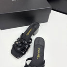 CC 25 Camellia Open Heel Mule Sandals 50mm Black Sheepskin 368855