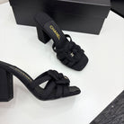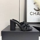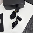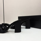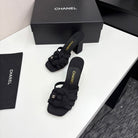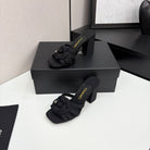 CC 25 Camellia Open Heel Mule Sandals 90mm Black Sheepskin And Fabric 368841