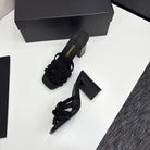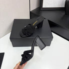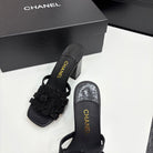 CC 25 Camellia Open Heel Mule Sandals 90mm Black Stone Grain And Sheepskin 368844