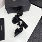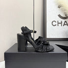 CC 25 Camellia Open Heel Sandals 90mm Black Coarse Glitter Fabric And Sheepskin 368818