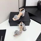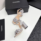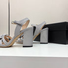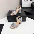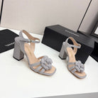 CC 25 Camellia Open Heel Sandals 90mm Grey Beige Sheepskin And Fabric 368817