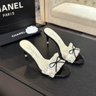 CC 25 Camellia Sandals Beige Black Silk Satin Lambskin 251720