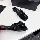 CC 25 Camellia Thong Sandals Black Coarse Glitter Fabric And Sheepskin 368835