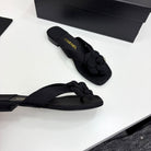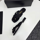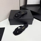 CC 25 Camellia Thong Sandals Black Sheepskin And Fabric 368838