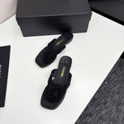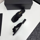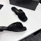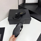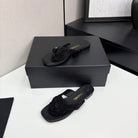 CC 25 Camellia Thong Sandals Black Stone Grain And Sheepskin 368834