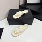 CC 25 Camellia Thong Sandals Ivory Sheepskin And Fabric 368836