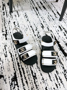 CC 25 Dad Sandals White Fabric Leather 300170