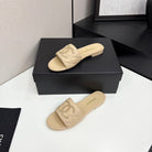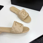 CC 25 Doubble Chain Embroidered Slippers Beige Quilted Sheepskin 352491