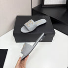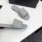 CC 25 Doubble Chain Embroidered Slippers Grey Quilted Sheepskin 352488