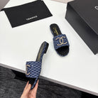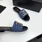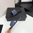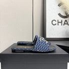 CC 25 Doubble Chain Embroidered Slippers Navy Blue Fabric 352496