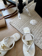 CC 25 Flip Flop Sandals White Calfskin Espadrilles