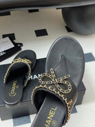 CC 25B Chain Bow Flip-flops Black Sheepskin 393987