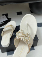 CC 25B Chain Bow Flip-flops Ivory Sheepskin 393986