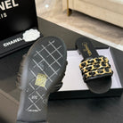 CC 25B Flat Mule Sandals Black Sheepskin With Chain 373814