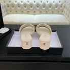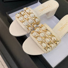 CC 25B Heel Mule Sandals 50mm Ivory Sheepskin With Chain 373817