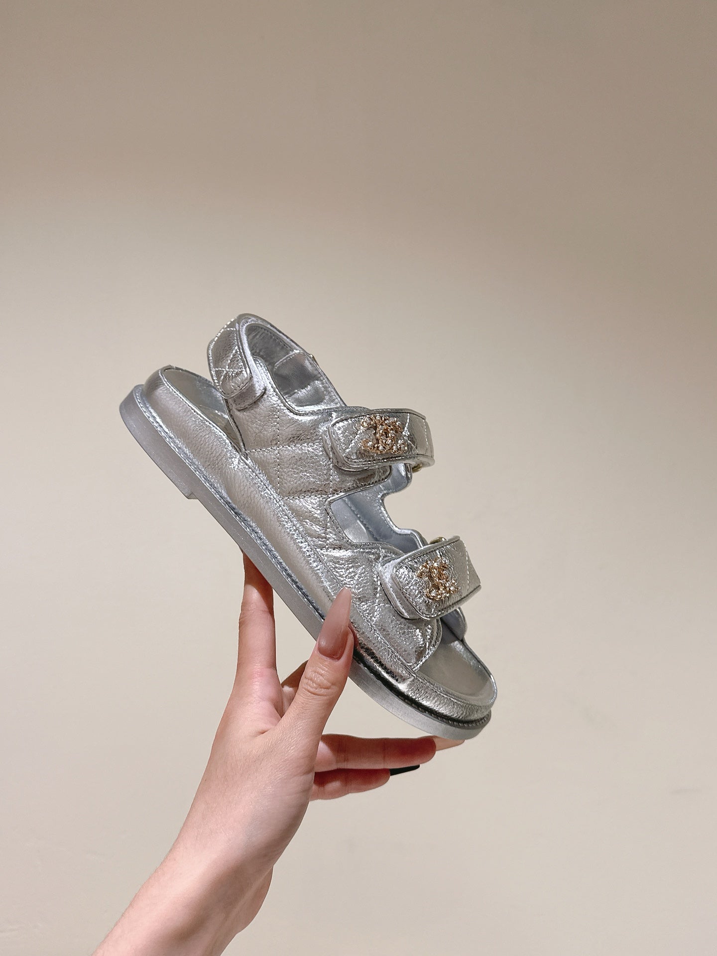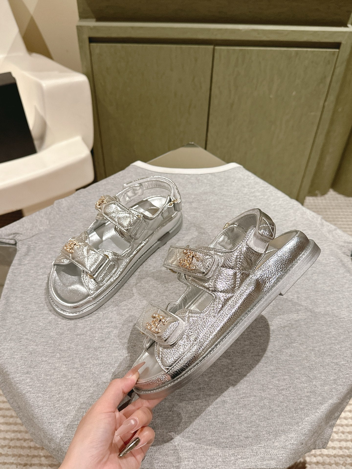 CC 25C Dad Sandals Silver Metalic Grained Calfskin 462236