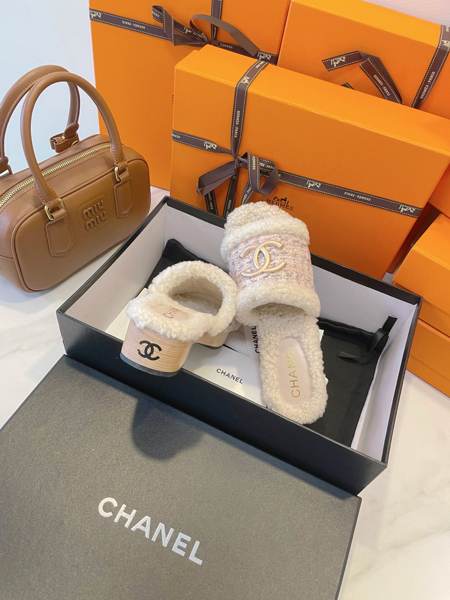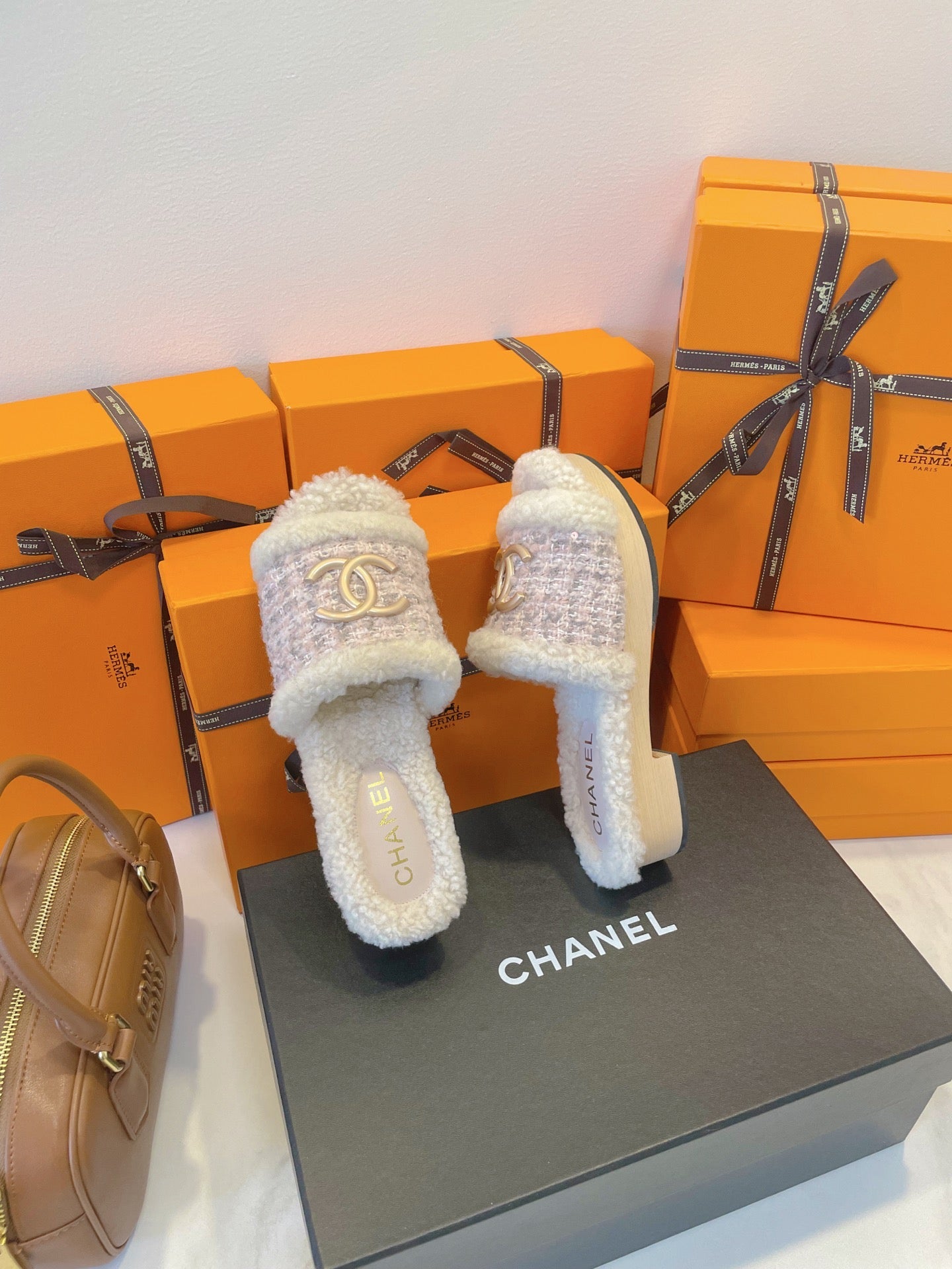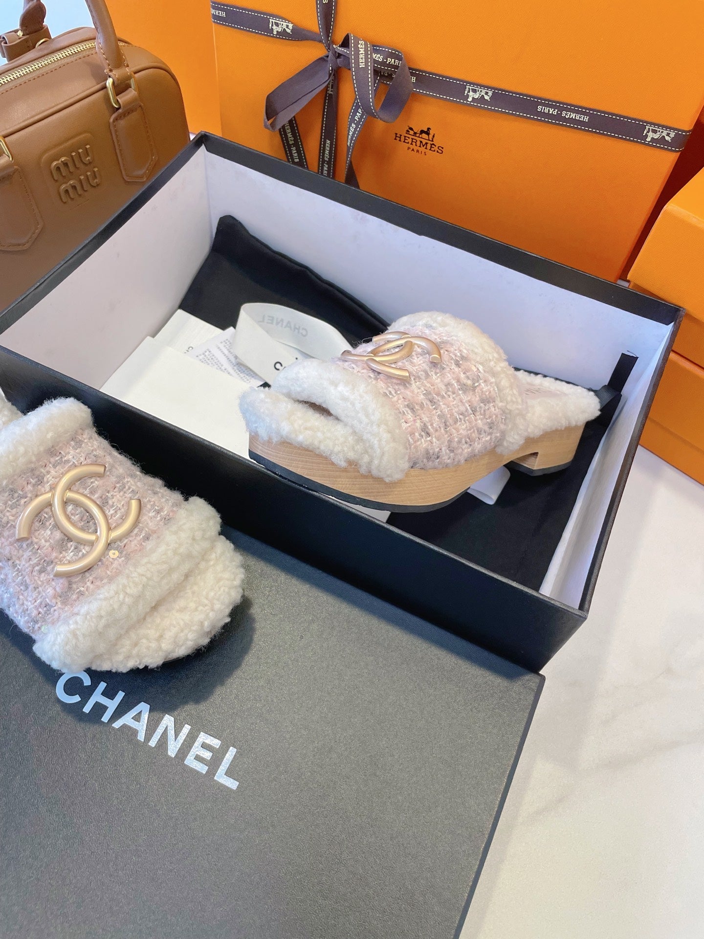 CC 25C Logo Slippers 50mm Multicolor Shearling Wood 423698